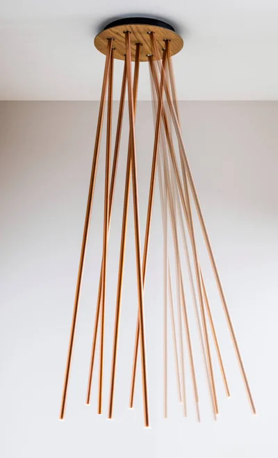 This lamp is based on findings from Experiment. I wanted to create a wall lamp that gave a different type of light than that seen in traditional lamps, making the light more interesting by emulating light refraction by water. This makes the emitted light more interesting than the lamp itself, causing the emitted light to provide a larger decorative effect in a room than the physical lamp itself.